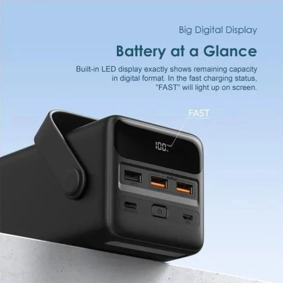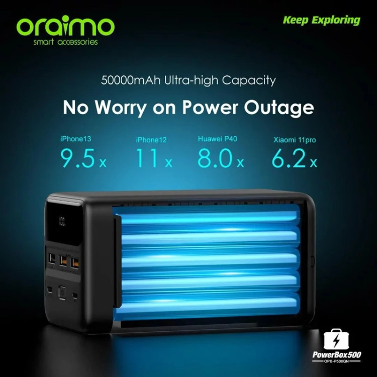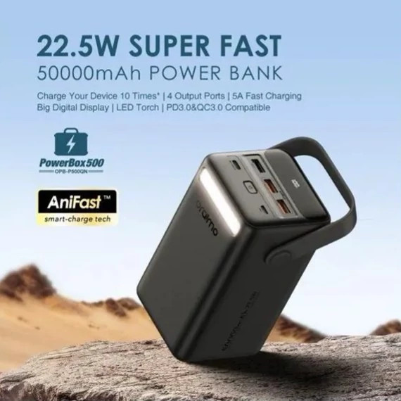 -ظرفیت 50 هزار میلی آمپر -5 پورت -4 پورت خروجی -دارای چراغ قوه -دارای صفحه نمایش LED -انتقال فست شارژ 1 سال وارانتی برای اولین بار در شرکت اورایمو سان خاور میانه (تعویض دستگاه معیوب با آکبند همان مدل در فروشگاه مذکور بدون قید و شرط) -برخی اوقات ممکن است که ما به سفر های کمپی یا طولانی مدت برویم که برای این گونه سفر ها ما احتیاج داریم که دستگاه های ما مثل تبلت و موبایل شارژ داشته باشد. برای اینکه شما همیشه در این سفر ها شارژ داشته باشید بهتر است که یک پاوربانک با ظرفیت بالا تهیه کنید. شرکت اورایمو یک پاوربانک با ظرفیت بالا طراحی و تولید کرده که مناسب افرادی است که به سفر های کمپی می روند. اوربانک 50 هزار میلی آمپر اورایمو (Oraimo) یکی از مدلهای پرقدرت این برند است که برای شارژ دستگاههای مختلف مانند گوشیهای هوشمند، تبلتها، لپتاپها و دیگر گجتها طراحی شده است. این پاوربانک به فناوریهای PD (Power Delivery) و QC3.0 (Quick Charge 3.0) مجهز است که به افزایش سرعت شارژ کمک میکنند. این پاوربانک با مدل Oraimo OPB-P500QN روانه بازار شده است. -پاوربانک 50000 میلی آمپر 22.5 واتی اورایمو مدل Oraimo OPB-P500QN این ظرفیت بالا امکان شارژ چندین بار دستگاههای مختلف را بدون نیاز به شارژ مجدد پاوربانک فراهم میکند. این پاوربانک می تواند آیفون سری 16 را تا 10 مرتبه شارژ کند. پورت های آن 5 عدد می باشد که پورت های خروجی آن 4 عدد می باشد که شامل 3 پورت USB-A و 1 پورت تایپ سی است. پورت های ورودی آن 2 عدد تایپ سی می باشد. -پاوربانک 50000 میلی آمپر 22.5 واتی اورایمو مدل Oraimo OPB-P500QN دارای صفحه نمایش LED می باشد که درصد دقیق پاوربانک را به شما نشان می دهد. این پاوربانک یک چراغ قوه هم دارد. چراغ قوه آن نور 3 حالته دارد که یک نور زرد ملایم ، نور سفید ملایم و نور سفید با شدت بیشتر دارد. یک دستگیره بر روی کار تعبیه شده است که برای حمل ساده تر آن باشد.