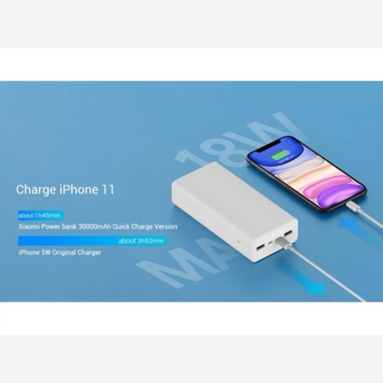 مشخصات و ویژگیها: -ظرفیت: 30000 میلی آمپر ساعت، ظرفیت اسمی. -باتری: لیتیوم پلیمر. -وزن: 680 گرم، سنگین وزن. -ابعاد: 154.5 × 72.3 × 38.9 میلیمتر. -جنس بدنه: ABS + PC. -تعداد درگاه خروجی: سه عدد (دو پورت USB-A و یک پورت USB-C). -درگاه ورودی: MicroUSB و USB-C. -پشتیبانی از شارژ سریع: توان خروجی 18 وات و توان ورودی تا 24 وات. -قابلیت شارژ همزمان: امکان شارژ همزمان سه دستگاه. -حالت کم جریان: برای شارژ دستگاههای کم مصرف مانند هدفون و ساعت هوشمند. -سیستمهای حفاظتی: شامل حفاظت در برابر اتصال کوتاه، ولتاژ و جریان بیش از حد، دمای بیش از حد و شارژ و تخلیه بیش از حد. -نشانگر LED: برای نمایش میزان شارژ باتری. -مزایا: ظرفیت بسیار بالا برای شارژ چندین بار دستگاهها. پشتیبانی از شارژ سریع و شارژ همزمان. قابلیت شارژ دستگاههای مختلف با درگاههای متنوع. سیستمهای ایمنی و حفاظتی. -معایب: وزن نسبتا زیاد. اندازه بزرگ و عدم سهولت حمل در مقایسه با پاوربانکهای کوچکتر. -کاربردها: شارژ گوشیهای موبایل، تبلتها، لپ تاپها و سایر دستگاههای الکترونیکی. مناسب برای استفاده در مسافرتها و مکانهایی که دسترسی به پریز برق محدود است. شارژ دستگاههای کم مصرف با استفاده از حالت کم جریان.