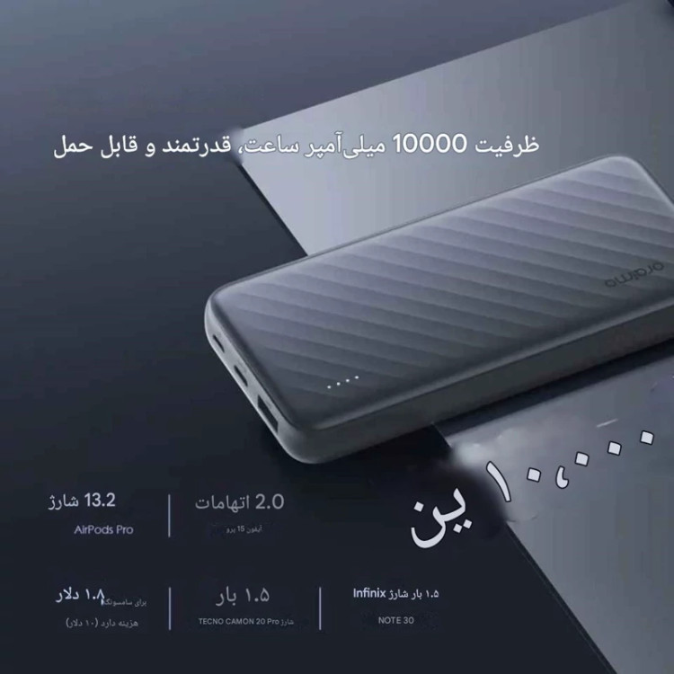 -پاوربانک AniFast که به تراشه اختصاصی oraimo مجهز شده است، میتواند به طور هوشمند پروتکل شارژ سریع دستگاه را شناسایی کند تا سریعترین شارژ ممکن را ارائه دهد و دستگاههای شما را با حداکثر سرعت 20 وات شارژ کند. - پشتیبانی از حداکثر توان 20 وات با پورت شارژ PD3.0 Type-C و شارژ سریع 18 وات با دو پورت شارژ USB QC3.0 دیگر. Toast 10 Flash II سه برابر سریعتر از شارژر قدیمی شما شارژ میکند. -این نوعی پاوربانک جیبی است. سرعت و ظرفیت شارژ با اندازه بسیار کوچک و وزن سبک عالی همیشه و همه جا به شما یاری رسان خواهد بود -تراشه پلیمری لیتیومی ممتاز نه تنها ایمن است، بلکه نرخ تبدیل بالاتر، ولتاژ پایدار و محافظت مدار قابل اعتمادی نیز دارد. این تراشه در برابر شارژ بیش از حد، تخلیه بیش از حد و سایر خطاها مقاوم است و محافظت قابل اعتمادی را هم برای پاوربانک و هم برای دستگاهها ارائه میدهد. -این دستگاه دارای دو پورت شارژ Type-C و Micro-USB است، بنابراین میتوانید روش شارژ مجدد را انتخاب کنید. -بافت لیزری سهبعدی و پوشش نانوی داخلی، محافظت جامعتری را برای سطح فراهم میکنند که در برابر لکه، خراش، اثر انگشت و عرق مقاوم است. -- با قدرت 10000 میلیآمپر ساعت، به راحتی نیاز شما به شارژ گوشی را برآورده میکند.