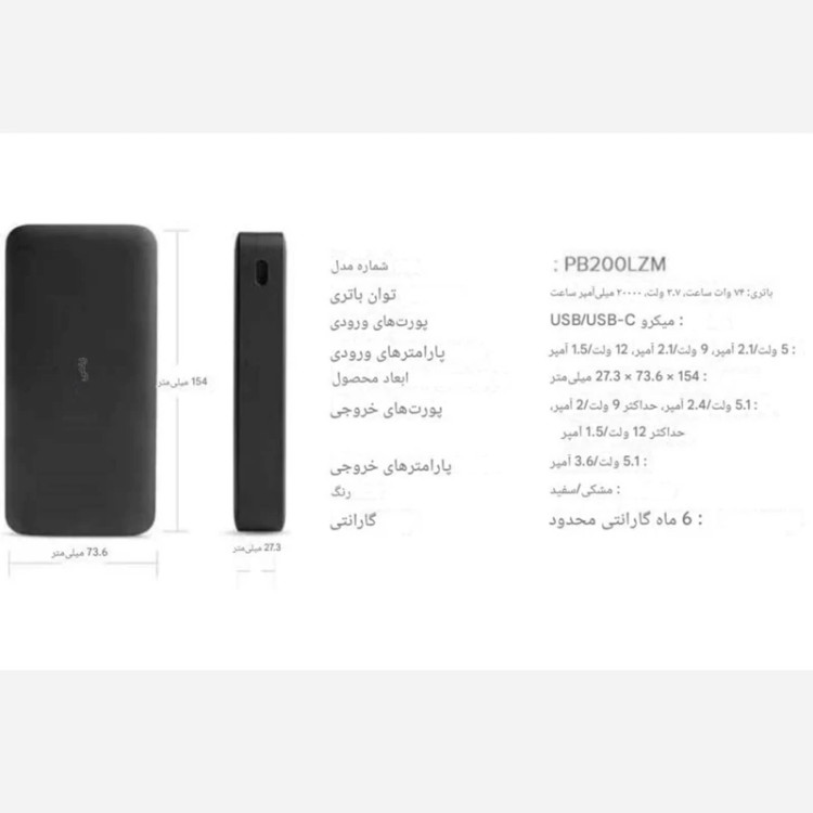 پاوربانک شیائومی مدل PB200LZM اصل